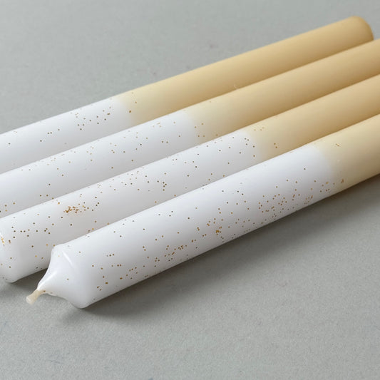 STERNENGOLD | 4er-Set Stabkerzen | Weiß + Cappucino + Glitzer