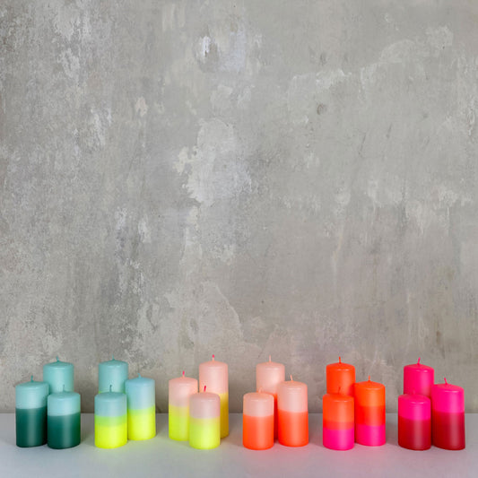 SCHICKZUSEKT | Blockkerze | Neongelb + Lachs + Neonpink