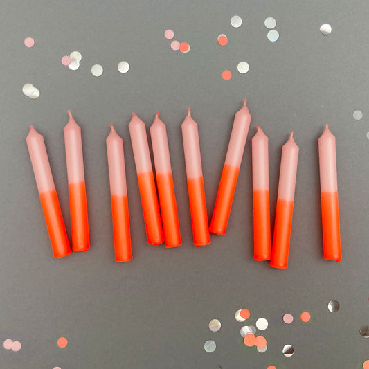 PARTYGLÜCK | 10er-Set Geburtstagskerzen | Neonorange + Rose