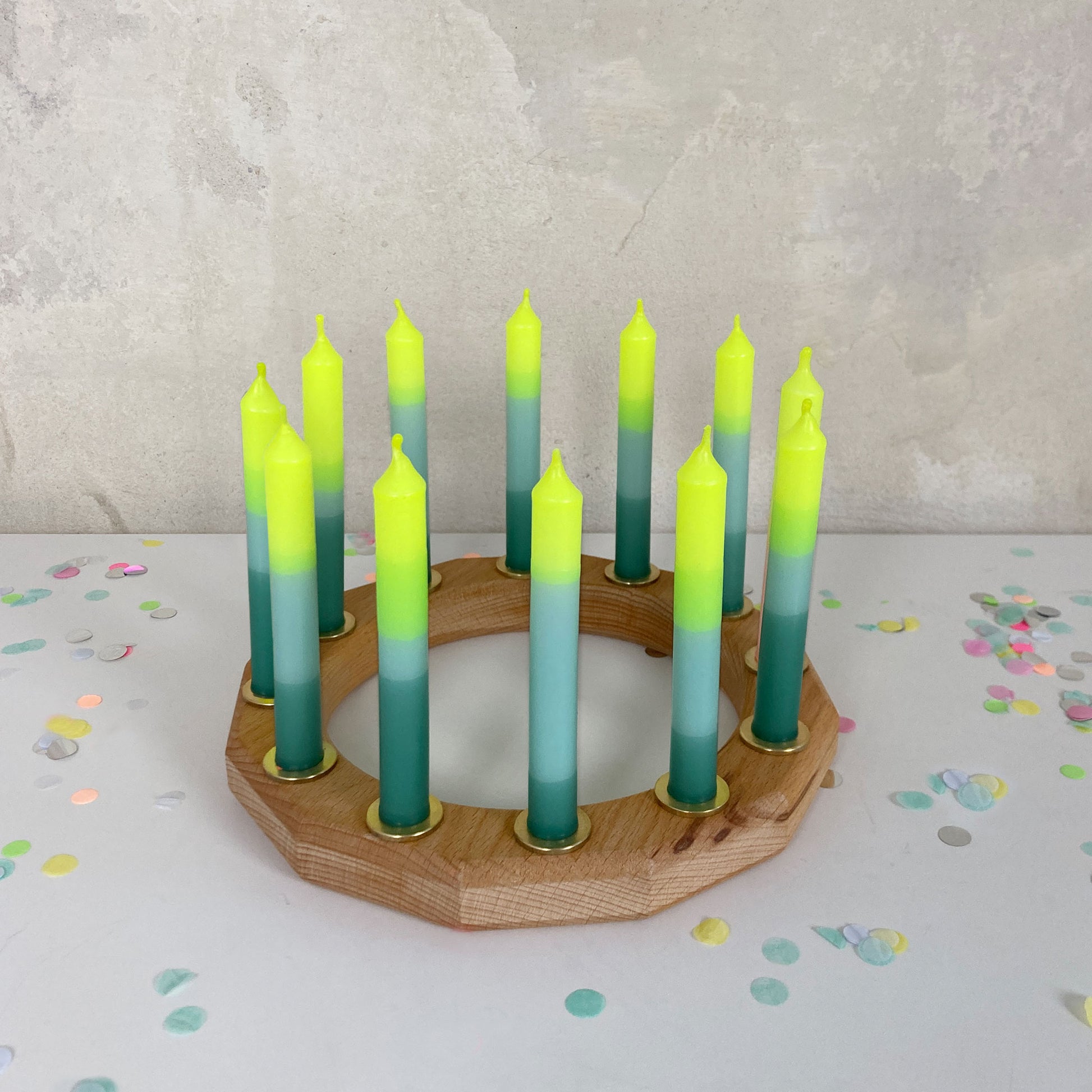SONNENWALD | 10er-Set Geburtstagskerzen | Neongelb + Tanne + Salbei